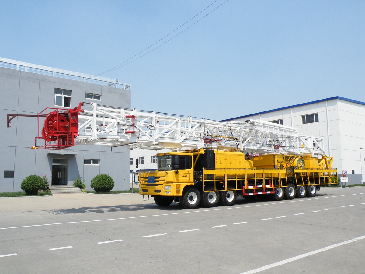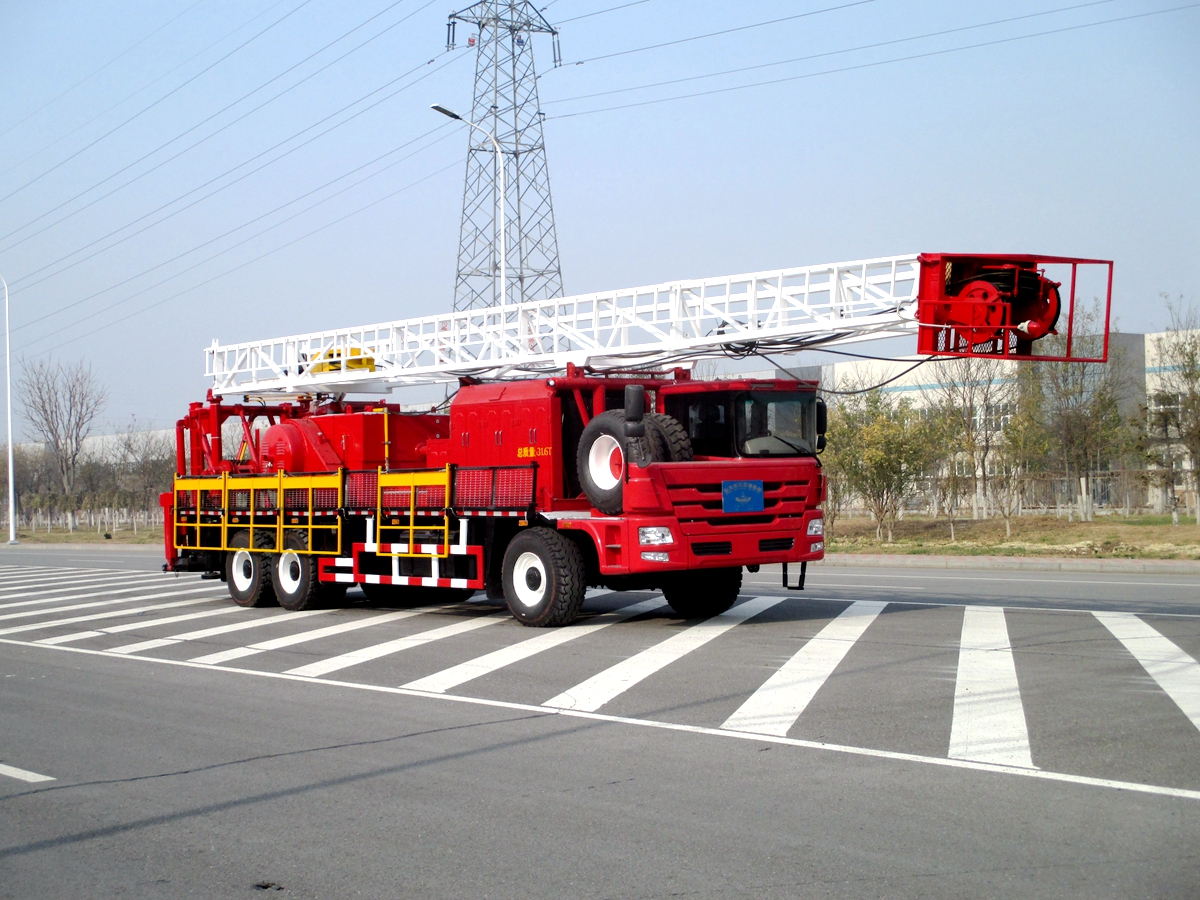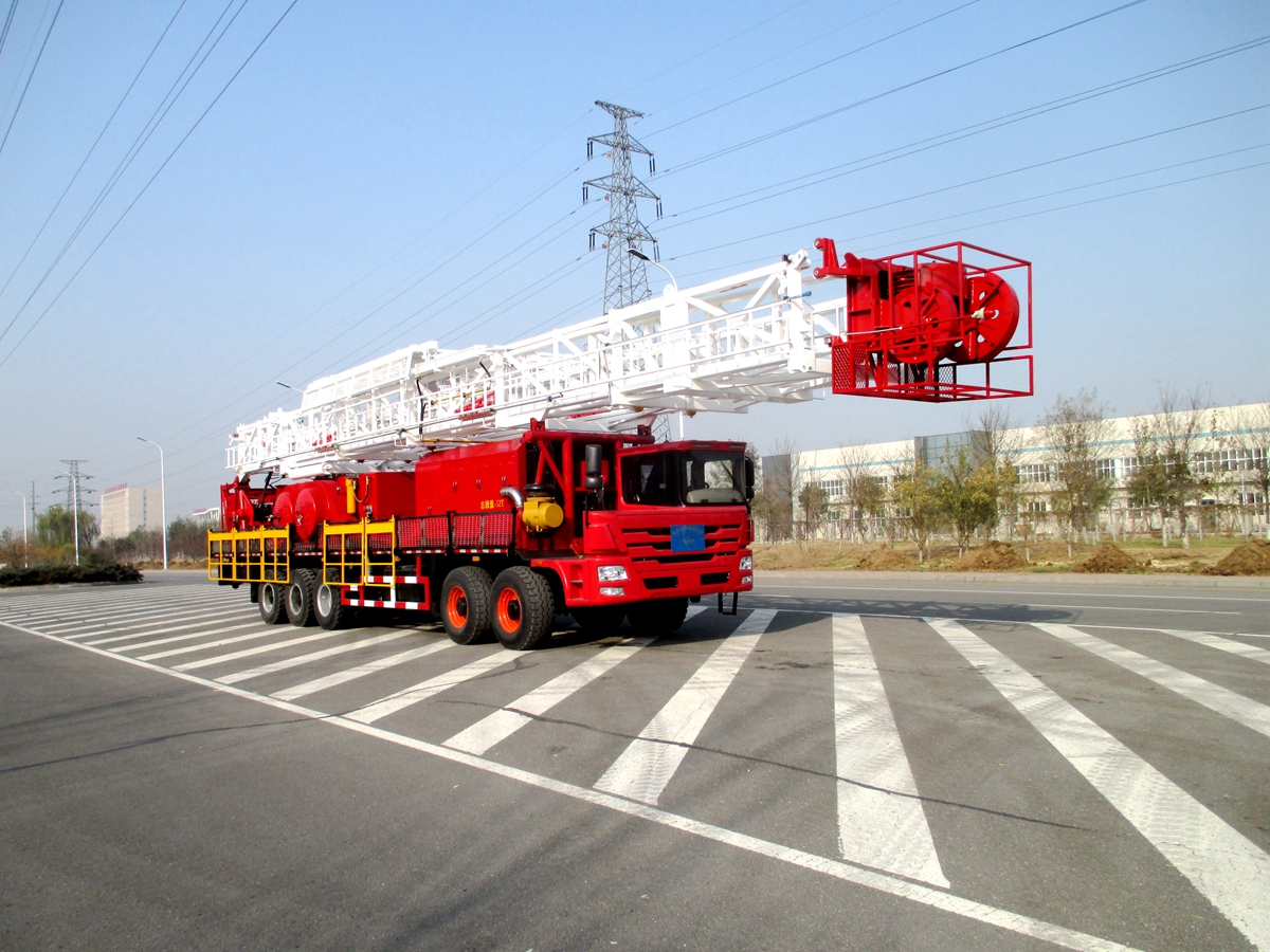 車(chē)裝修井機(jī)是將動(dòng)力系統(tǒng)、絞車(chē)、井架、游車(chē)系統(tǒng)及傳動(dòng)系統(tǒng)等部件安裝于自走式底盤(pán)上。整機(jī)具有結(jié)構(gòu)緊湊,集成度高,占地面積小,移運(yùn)快捷,搬遷效率高等特點(diǎn)。